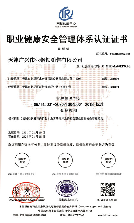 廣興集團(tuán)下轄:天津廣興偉業(yè)鋼鐵銷(xiāo)售有限公司,九旭鋼鐵(天津)有限公司,九旭鋼鐵(山東)有限公司,廣興偉業(yè)(山西)外貿(mào)處,含6處生產(chǎn)基地,集生產(chǎn),銷(xiāo)售,配送,售后一站式配套服務(wù)商,通過(guò)ISO90001質(zhì)量管理體系認(rèn)證,ISO14001環(huán)境管理體系認(rèn)證,ISO職業(yè)健康安全管理體系認(rèn)證,集團(tuán)全體員工竭誠(chéng)為您服務(wù)。 集團(tuán)現(xiàn)已成為一家集鋼管加工、銷(xiāo)售、倉(cāng)儲(chǔ)和物流于一體、內(nèi)外貿(mào)兼具的復(fù)合型貿(mào)易企業(yè)。公司具有出口資質(zhì),海關(guān)編號(hào)1213960A4A,可代為辦理出口及裝運(yùn)一體化服務(wù),確保出口效率。 公司所銷(xiāo)售的鋼管,主要為來(lái)自天鋼、包鋼、衡鋼等知名鋼鐵集···